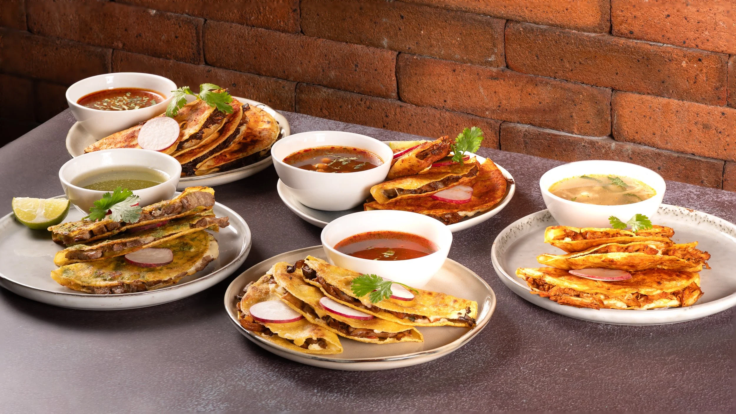 Crispy cheese filled tortillas, served with a rich birria broth for dipping